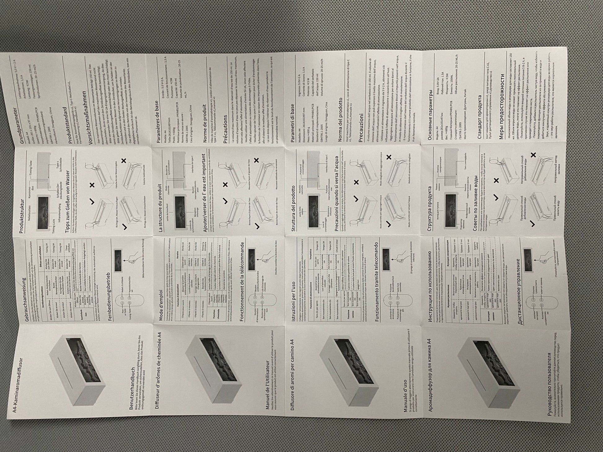 Product accessories: Aromatherapy machine host*1, remote control*1, Typec power cord*1, 8-country manual*1