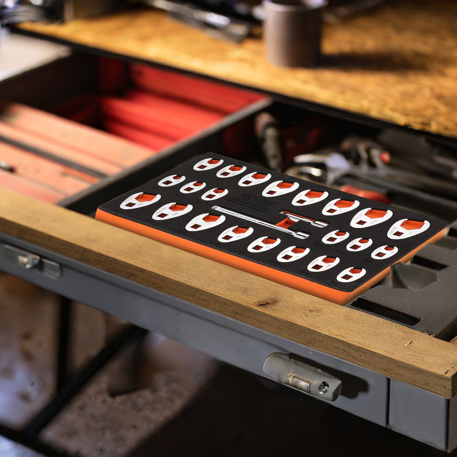VEVOR 3/8" Drive Crowfoot Wrench Set with 2 Extension Bars, 24-Piece Crows Foot Wrench Set, SAE 3/8"-1" and Metric 10-22 mm, CR-MO Steel Crowfoot Wrench Set, with EVA Tool Organizer