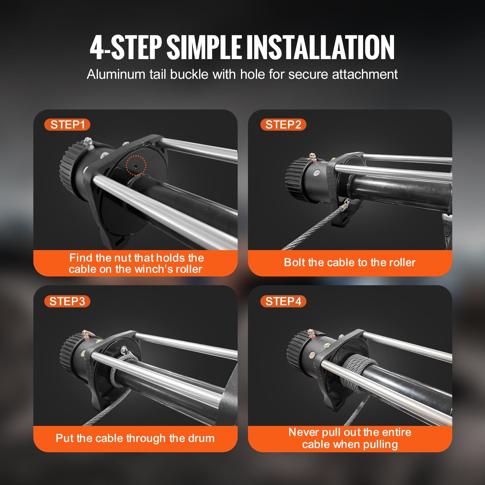 Corrosion-Resistant Galvanized Surface: The steel wire is treated with hot-dip galvanization, enhancing its corrosion and abrasion resistance. Unlike oiled steel wires, it keeps your hands clean during use. Our towing winch cable ends with a 6 ft/1.8 m orange paint warning stripe as a smart reminder of your winching limit.
