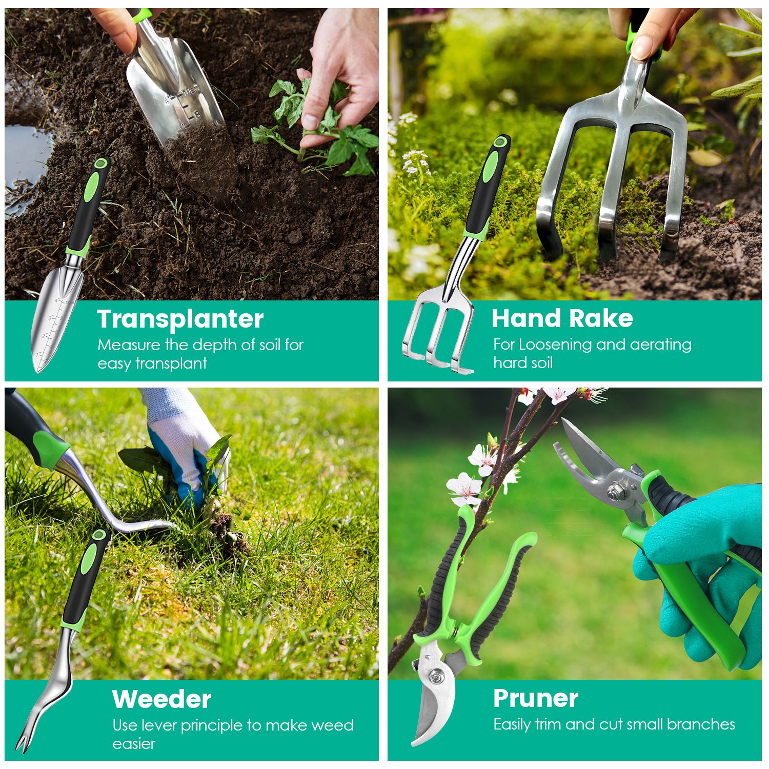 *Rustproof Aluminum Alloy*:Our outdoor gardening hand tools are crafted from heavy duty aluminum alloy,ensuring great strength,durability,rust and corrosion resistance. No need to worry about getting rusty or breaking when digging or weeding hard soil.