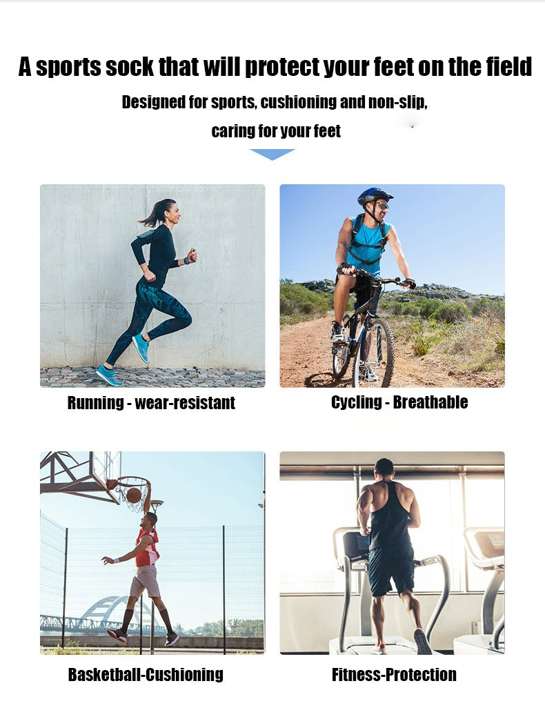 5.Elegant design and performance socks are suitable for all kinds of sports and all kinds of occasions, such as running, basketball, soccer, sports, work, training and so on.
