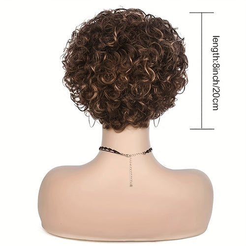 Short and loose curly hair, non-toxic wig, elastic curly hair, curly bangs, 150% density, full mechanism, suitable for the whole scene